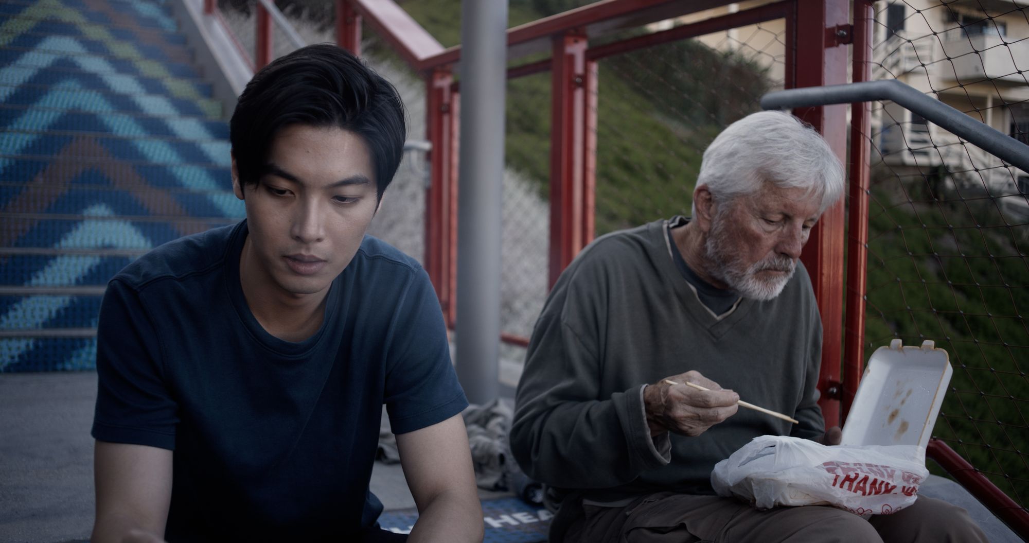 Stairway (2022) Through a box of Chunghwa cigarettes offered by an old homeless man in LA Chinatown, a young Chinese American man comes to terms with his struggles during the pandemic.